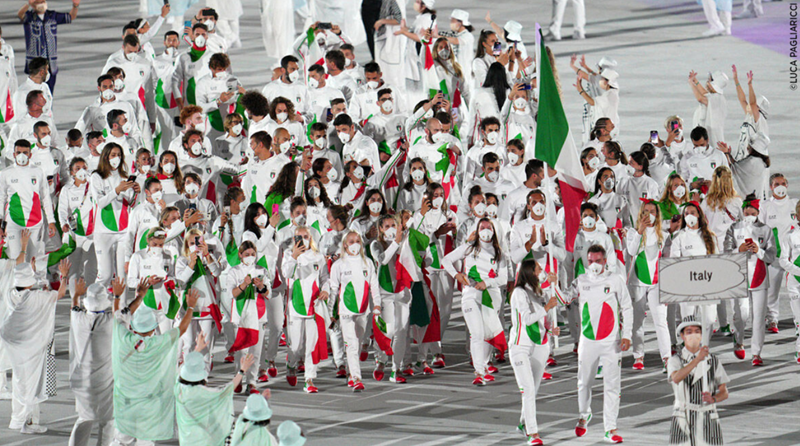 奥运开幕式时的意大利代表团。(图片来源:Amarni官网截图)