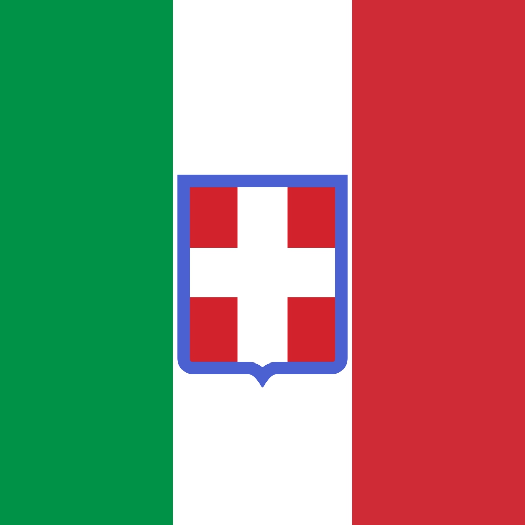 1848年的意大利国旗,三色旗中印有萨伏依王室的徽章。(图片来源:维基百科)