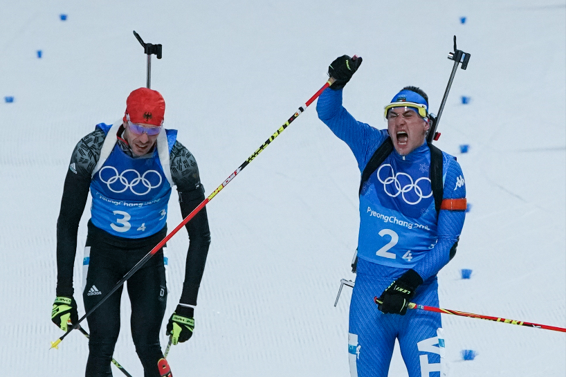 平昌冬奥会上的意大利选手多米尼克·温迪施(右)。(图片来源:中新社)