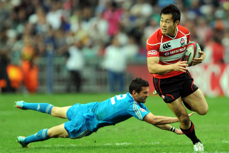 2014年的“香港国际七人榄球赛”场上的意大利队员(左),(图片来源:中新社)