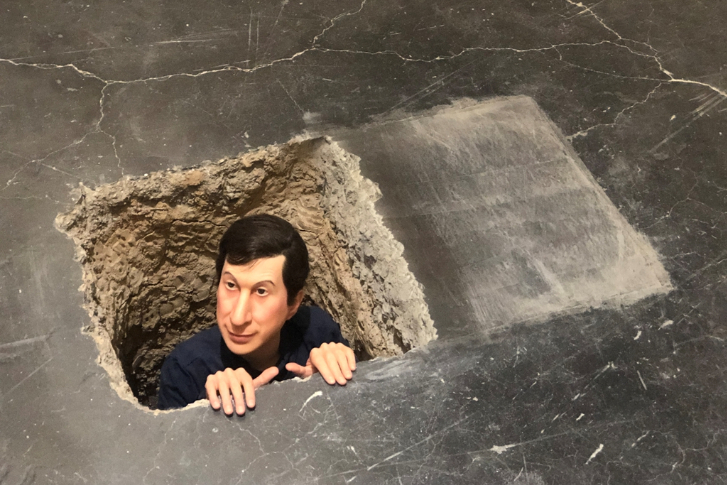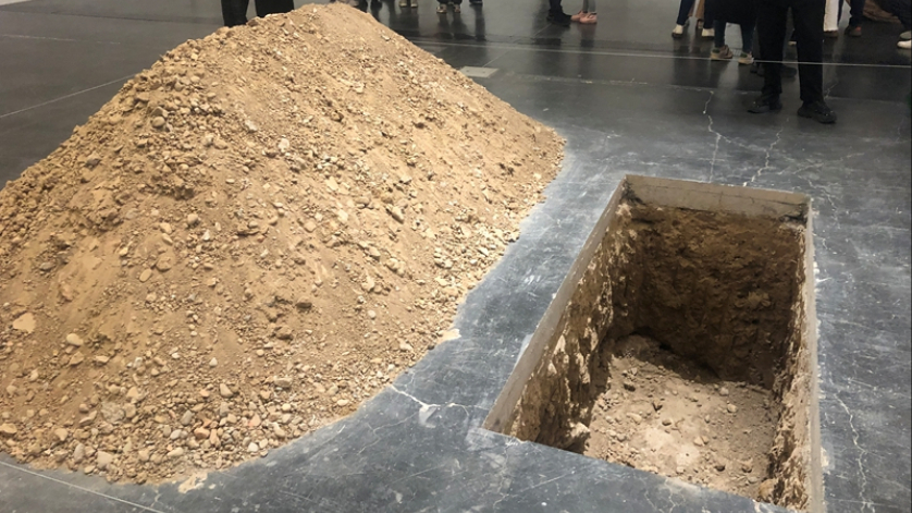 而在展厅中央,卡特兰已经掘出了墓坑。“生活的意义是什么?所有的事情看起来都很荒谬,直到我们死去的一刻它才有意义。”在接受《华盛顿邮报》采访时,他曾这样说过。假装已经死了,但是却可以看到和听到周围发生的事情,这是卡特兰创作的灵感之一。