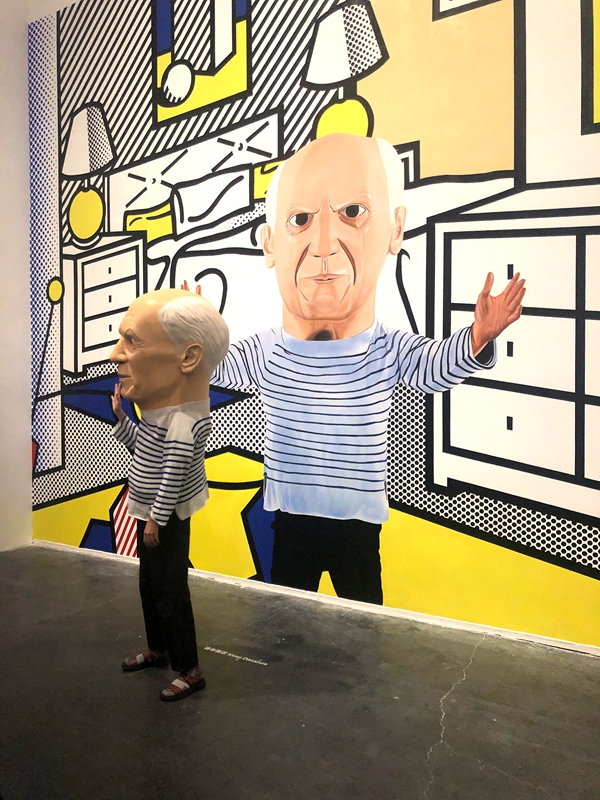 当你醉心于与《喜剧演员》合影,一只手会轻拍你的后背,回过头,一只大头玩偶毕加索严肃的看着你。