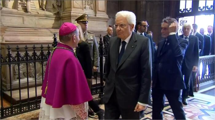 意大利时间下午3时,葬礼在伦巴第首府米兰大教堂举行,该大教堂过去曾举办过国葬。
