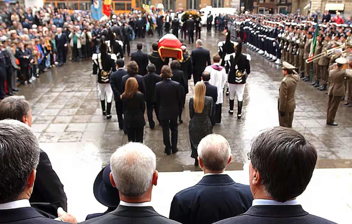 共和国总统塞尔吉奥·马塔雷拉、总理乔治亚·梅洛尼(Giorgia Meloni)、副总理马泰奥·萨尔维尼(Matteo Salvini)和力量党创始人之一安东尼奥·塔亚尼(Antonio Tajani)、匈牙利总理维克多·欧尔班(Viktor Orban)参加了葬礼!
