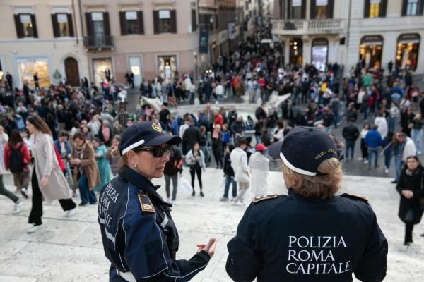 图为警察在意大利罗马西班牙广场执勤。(图片来源:新华社)