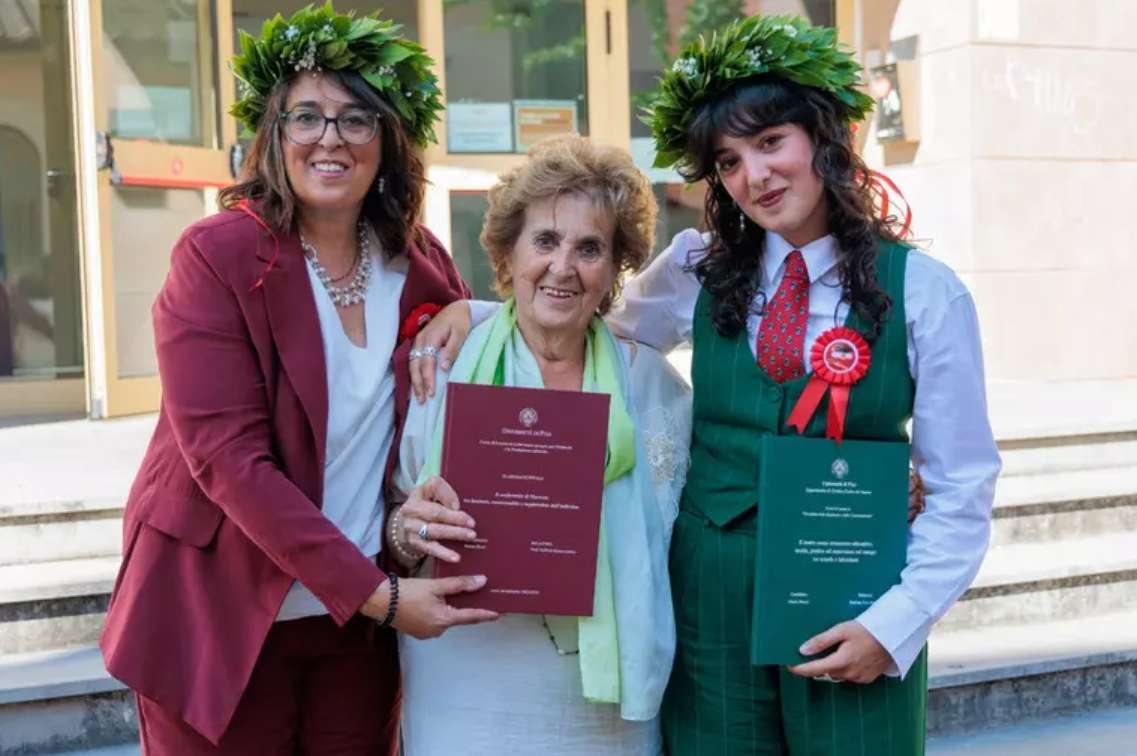 同一天下午,她的女儿玛尔塔也顺利完成了“表演艺术”专业的论文答辩。据当地媒体《La Nazione》报道,一个特别的身影见证了这两场意义非凡的典礼——84岁高龄的切萨里纳(Cesarina)女士,她是玛丽卡的母亲,也是玛尔塔的祖母。祖孙三代共同分享这一喜悦,场面温馨感人。