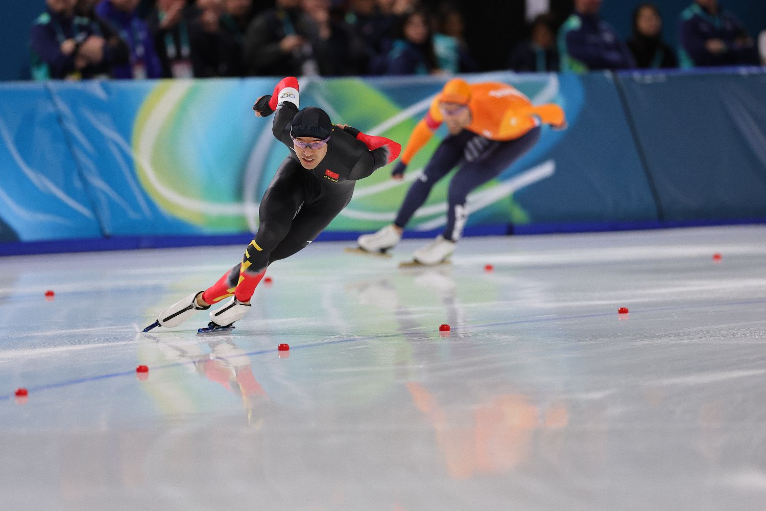 当地时间2月19日,在米兰冬奥会速度滑冰男子1500米比赛中,中国选手宁忠岩以1分41秒98的成绩夺冠并创造新的奥运纪录,获得个人在本届冬奥会的第三枚奖牌。(图片来源:中新社)