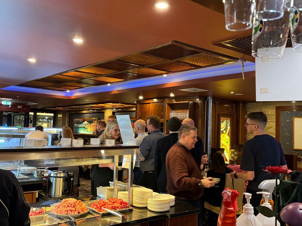 夜幕降临,华灯初上,瑞典斯德哥尔摩朝日火锅店迎来了一天中最热闹的时候。店外大雪纷飞,店里却气氛火热,食材在红油中翻滚跳动,辣椒与花椒激烈碰撞,空气中升腾起热气和香味,亲朋好友们围着火锅,边煮边涮,边吃边聊。