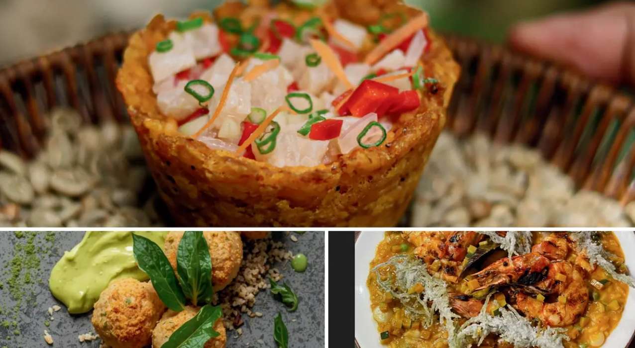 *秘鲁亚马逊大使Elia Garcia在塔尔波托的餐厅“La Patarashca”被誉为“雨林厨房的守护者”。她将aguaje棕榈果(富含维生素E)与本土白鱼paiche创新结合,推出塔塔酥配绿蕉饼基底。鲜鱼腌制后以椰香爆炒,裹丝滑aguaje泥,最终缀以酥脆彩椒粒——30分钟完成的雨林能量站。*