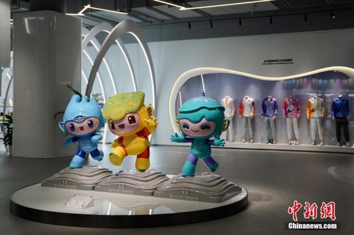浙江杭州,杭州亚运会博物馆中摆放着杭州亚运吉祥物“江南忆”的雕塑。
