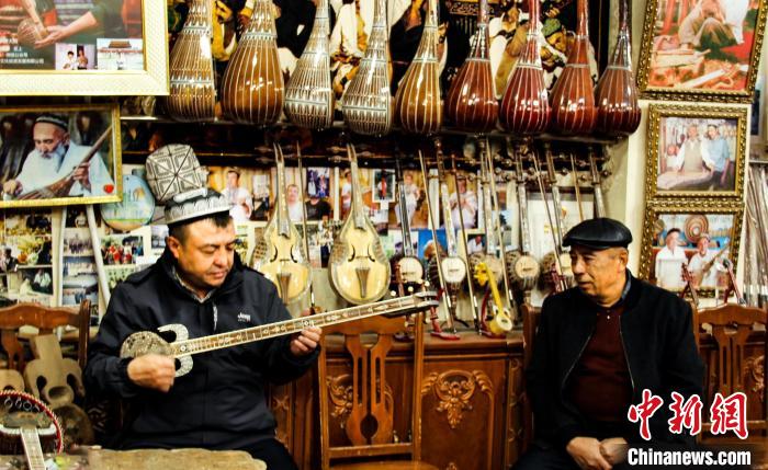 中新社报道,麦麦提依明·阿巴拜克热世居喀什古城并经营一家民族乐器店,店铺位于古城老街吾斯塘博依街入口处,人气很旺。