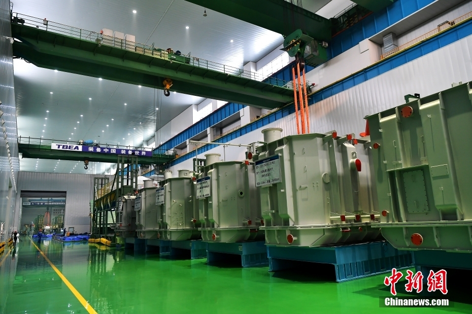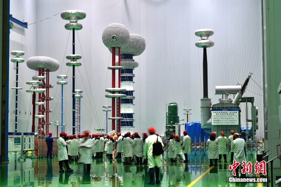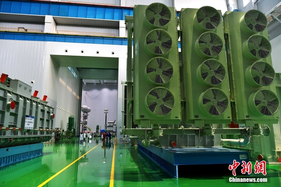 12月19日,新疆昌吉,参观者在特变电工新疆输变电科技产业园内的特高压变压器工程技术研究中心参观。(图片来源:本文图片均来自中新网)