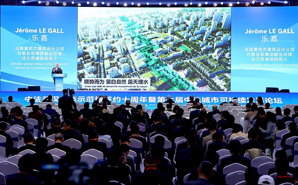 3月20日,中法武汉生态示范城签约十周年暨第七届中法城市可持续发展论坛在武汉市蔡甸区举行。