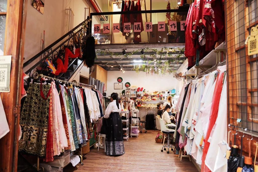 中新社报道,据“采掌柜”介绍,该店从2020年底营业以来,根据传统节日从事汉服汉礼推广,复原展示了唐代“裙幄宴”、七夕雅宴等,而推出的汉服写真项目,尤其受年轻群体喜爱。提供类似汉服妆造、摄影服务的店面,在景区内还有多家。