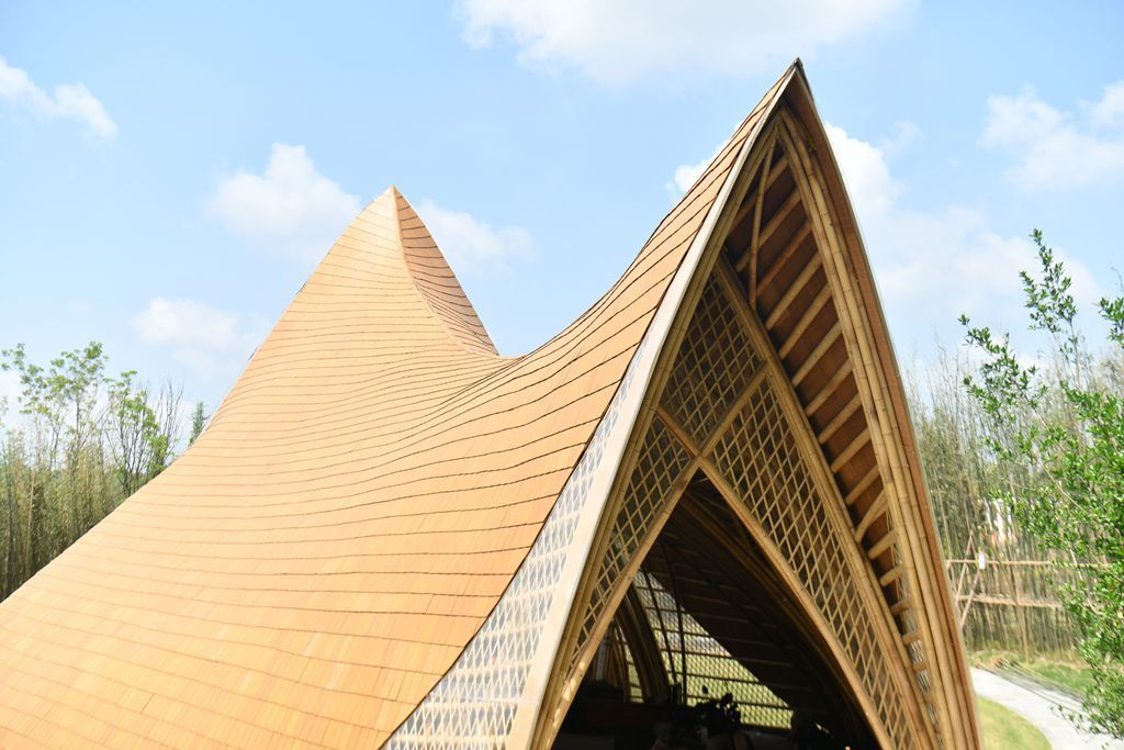 4月26日,2024年成都世界园艺博览会在成都开幕。图为国际竹藤组织园鱼乐竹馆。(图片来源:中新社)