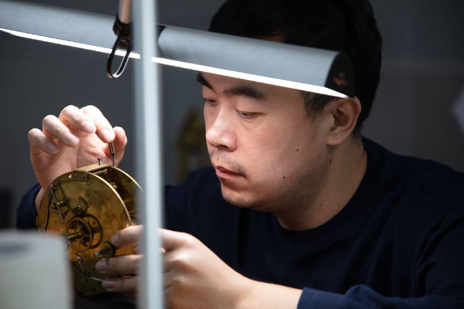 在一年多时间里,杨晓晨熟悉着不同钟表的结构,打磨基本功。“有一天师傅王津交给我一个民国时期的小钟练手。”杨晓晨回忆称,很多民间钟表制作工艺不够精细规范,因此修复过程更为复杂。他按照拆解、清洗、修复、再组装的步骤,清理积尘、补齿、不断调试金属轴和闸杆的角度和位置,最终耗时2个多月完成。“这算是我的第一件作品。得到师傅认可后,我正式开启文物钟表的修复工作。”