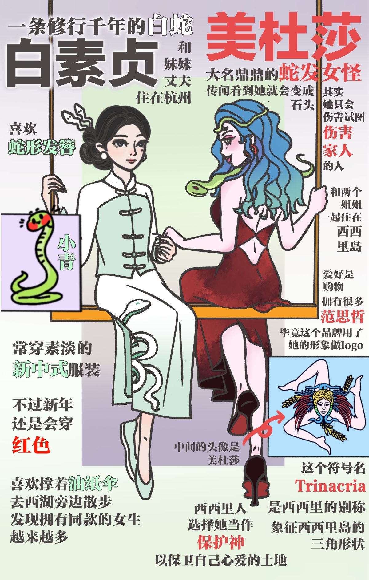 【意大利欧洲华人报网】在中文社交媒体上,意大利常被亲切地称为“欧洲的中国”,意思是这两个历史悠久的国家在传统文化、家庭观念、美食习惯和生活方式等方面有着不少相似之处。2025农历蛇年即将到来,本网特别策划《当美杜莎遇到白素贞》系列海报,当意大利与中国的经典蛇形象——西西里岛象征驱邪的“三腿美杜莎”和中国家喻户晓的“白娘子”在Bereal社交软件相遇并分享生活,会发现意大利与中国的奇妙共鸣比想象中更多。