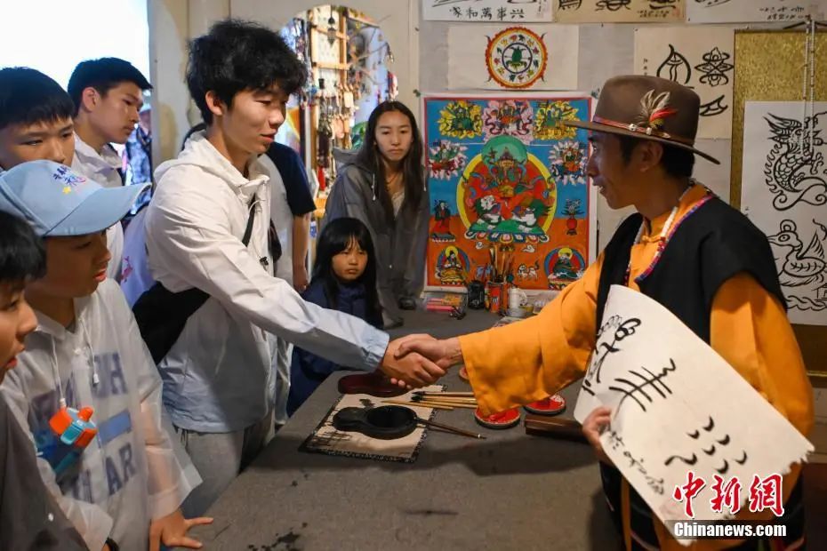 图为华裔青少年体验东巴文化。中新社记者李嘉娴摄