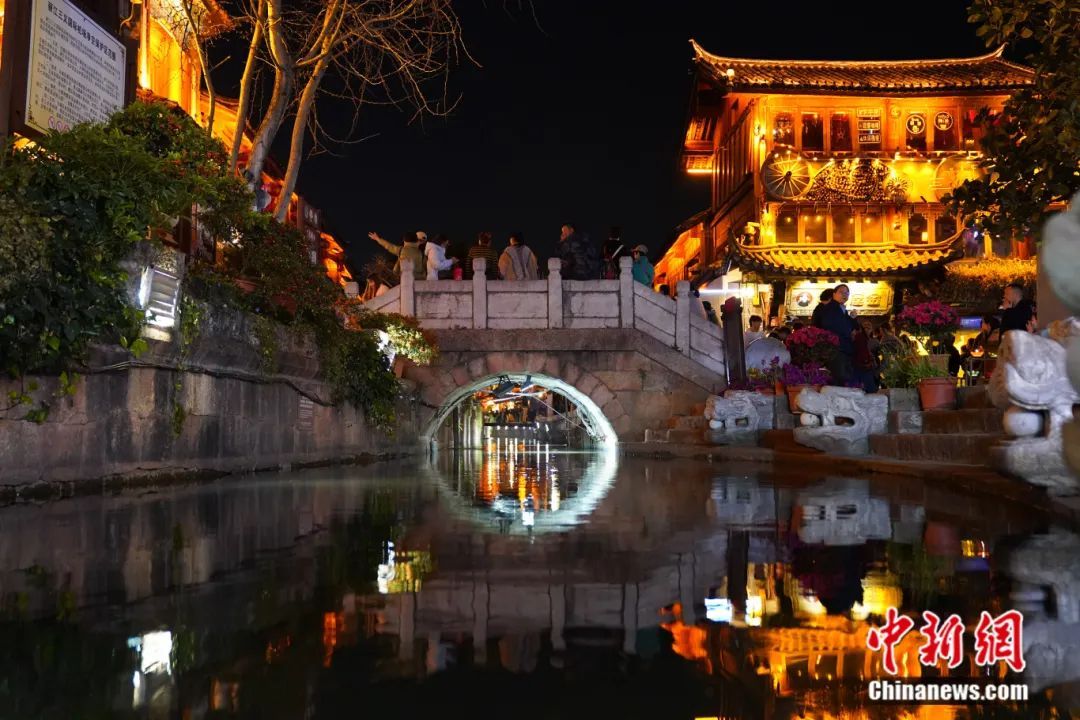 图为丽江古城灯火繁华,游人络绎不绝。中新社记者刘冉阳摄