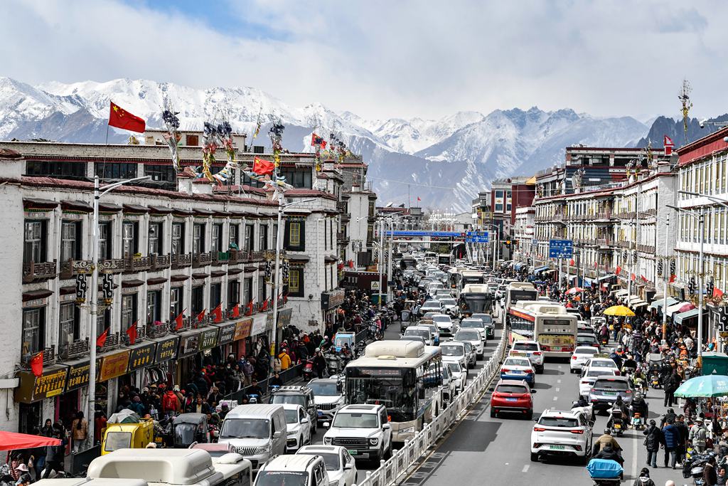 2月21日,拉萨市中心热闹街景。(图片来源:本文图片均来自中新社)