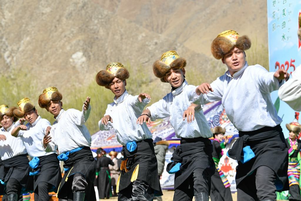 3月16日,在西藏自治区拉萨市曲水县,人们载歌载舞庆祝春耕开耕。
