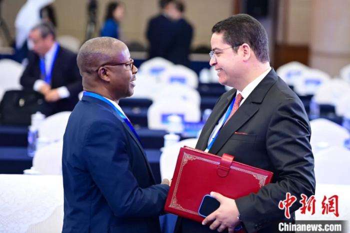 2023年12月5日,“纪念《世界人权宣言》发表75周年”国际研讨会在北京举行。图为与会嘉宾在会后交流。