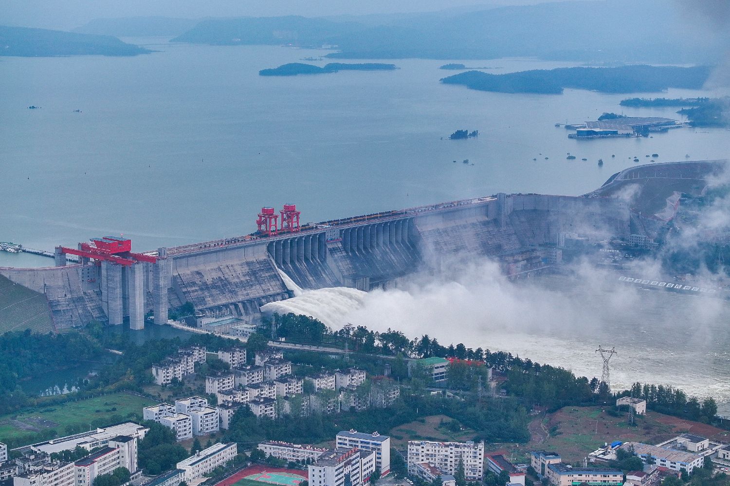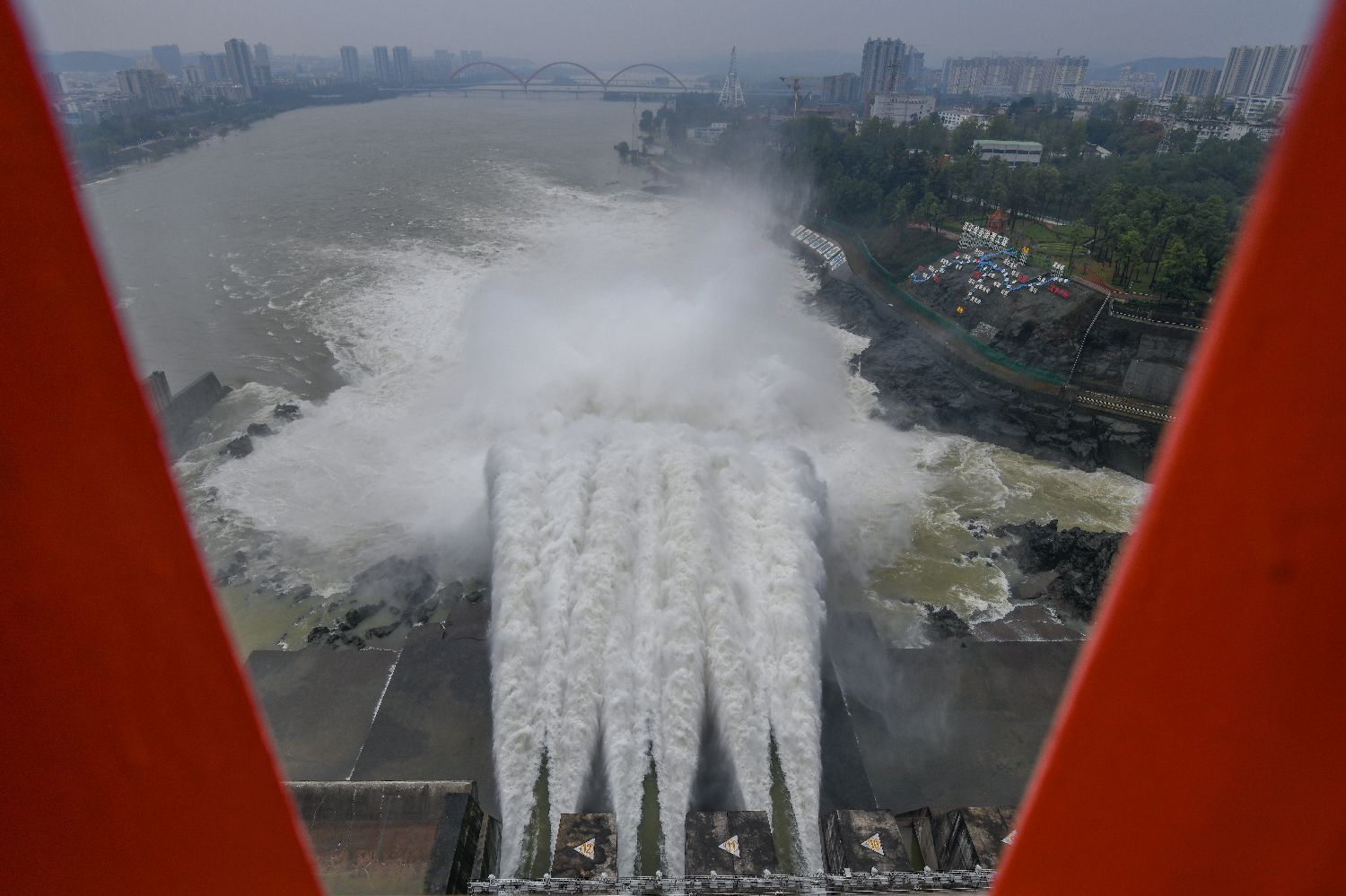 图为10月22日,湖北省丹江口市,丹江口大坝开闸泄洪。