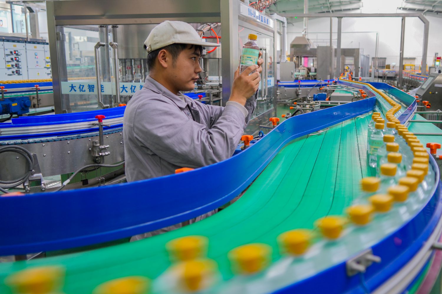 图为10月22日,湖北丹江口,武当山水饮料有限公司生产车间内,工作人员正在忙碌。