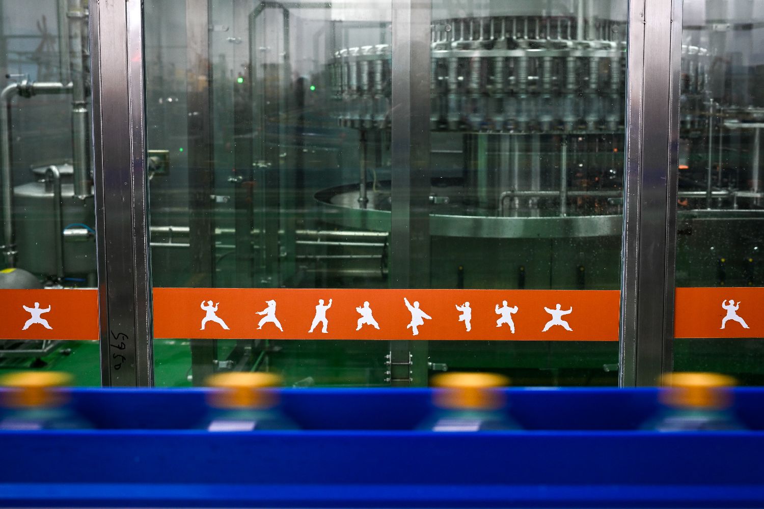 图为10月22日,湖北省丹江口市武当山水饮料有限公司生产车间内,自动化生产线高速运转。