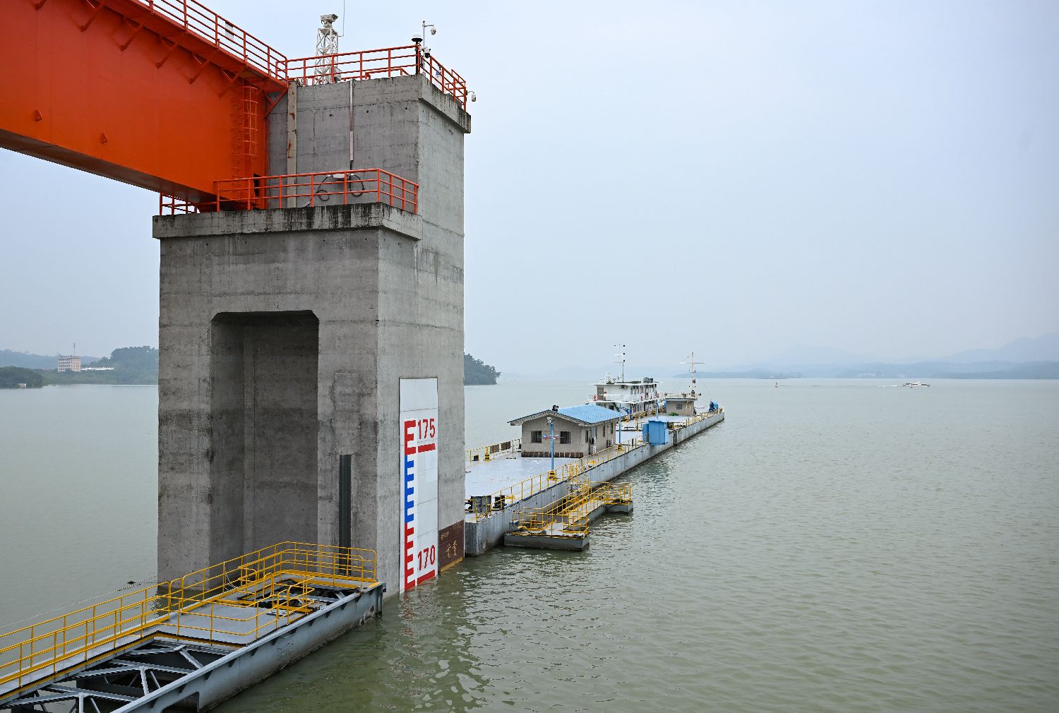 丹江口水库给民众带来了安居的美好生活,而民众也用行动守护这“一库清水”。图为10月22日,湖北丹江口水库实时水位线达170米。