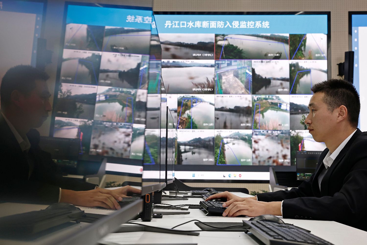 图为10月22日,在丹江口市水质安全保障指挥中心,工作人员监控电脑上的实时数据。