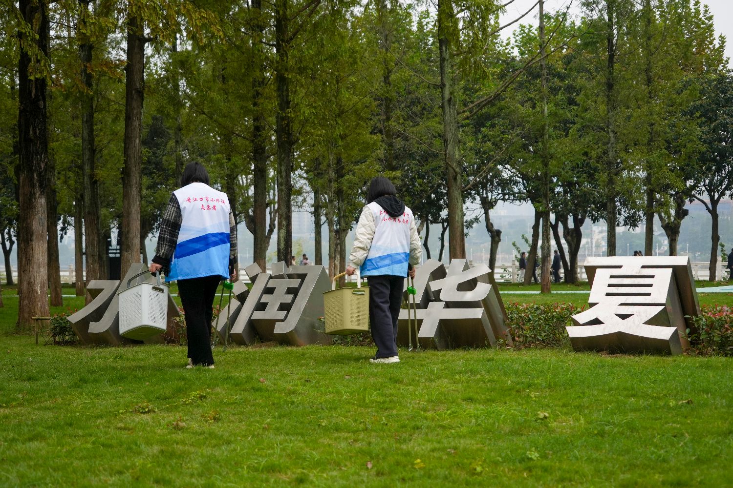 图为10月22日,丹江口“小水滴”环保志愿者在维护环境卫生。