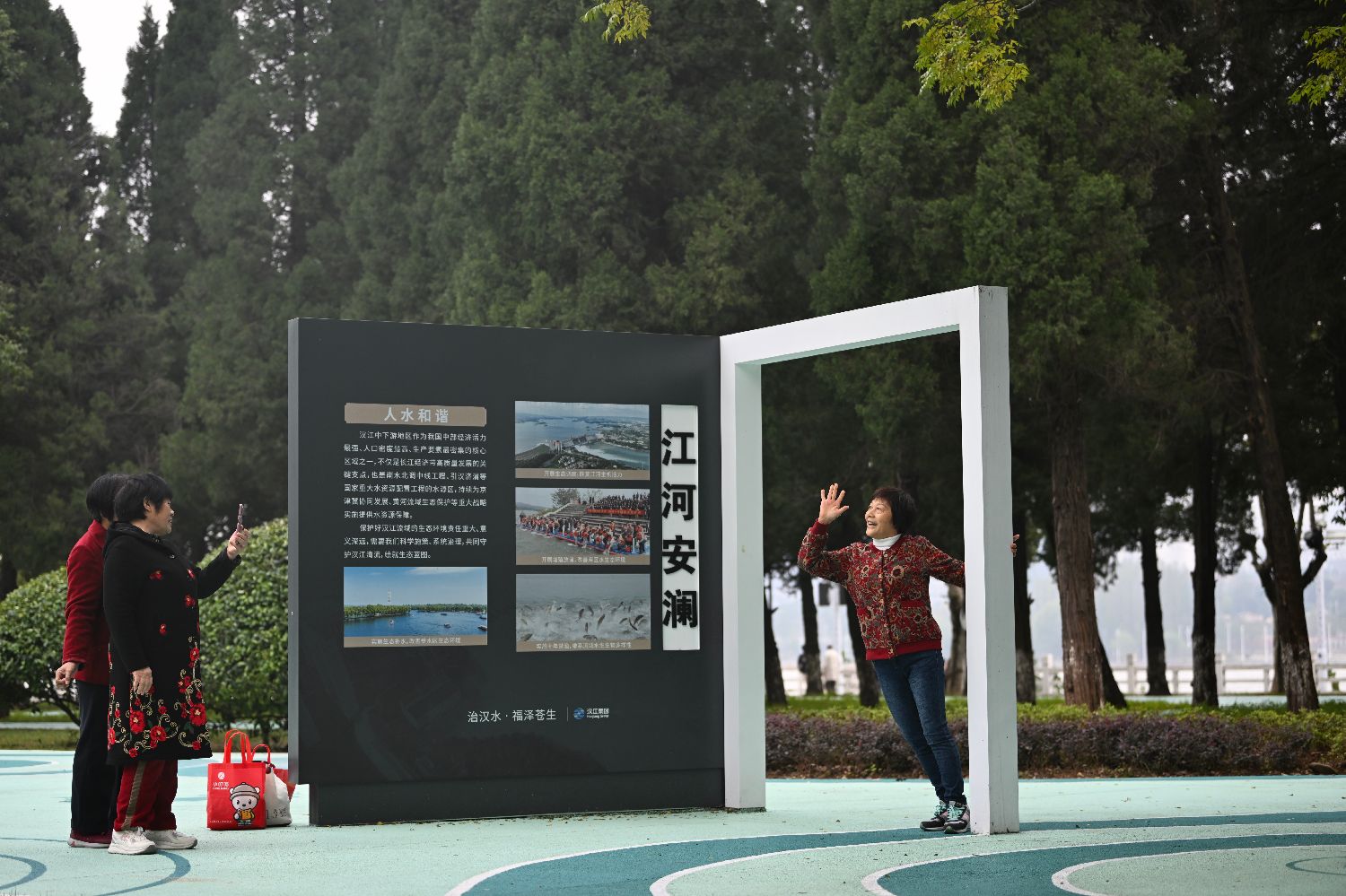 图为10月22日,湖北省丹江口市,游客在公园内游玩打卡。