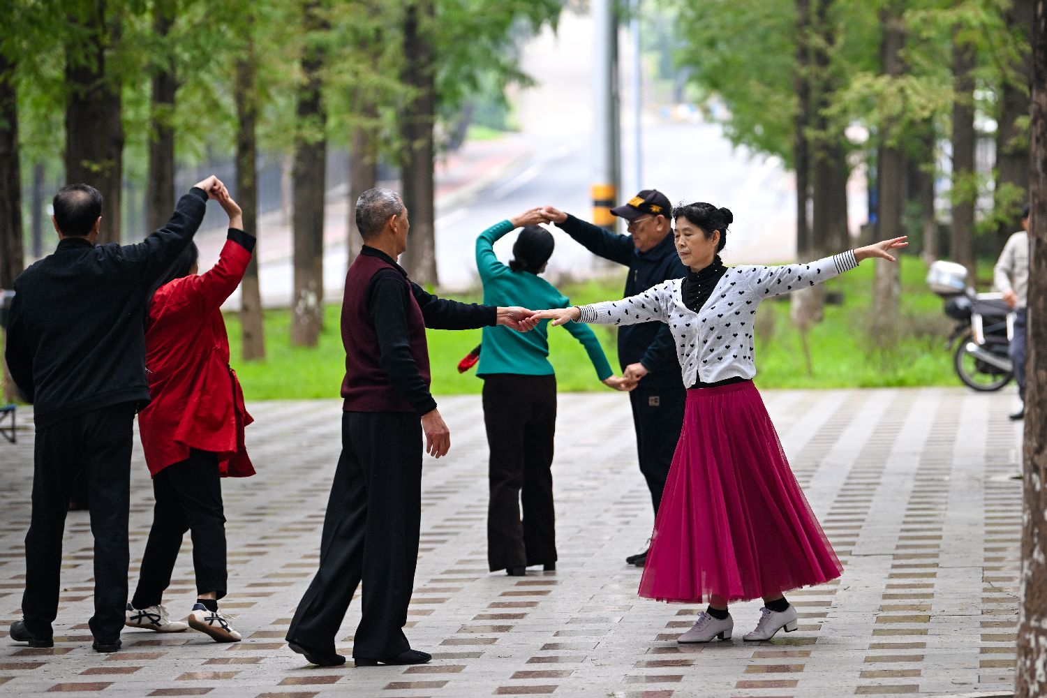 图为10月22日,市民在丹江口的街边公园跳舞。