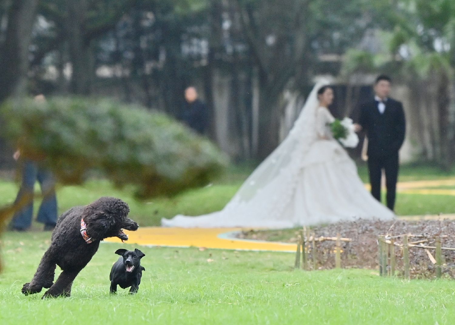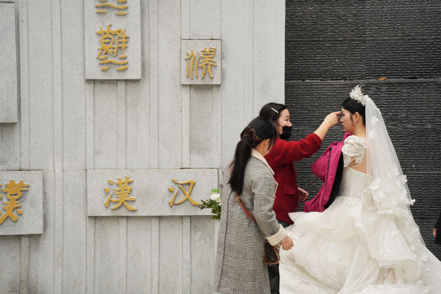 图为10月22日,丹江口汉水文化公园里准备拍结婚照的新人。