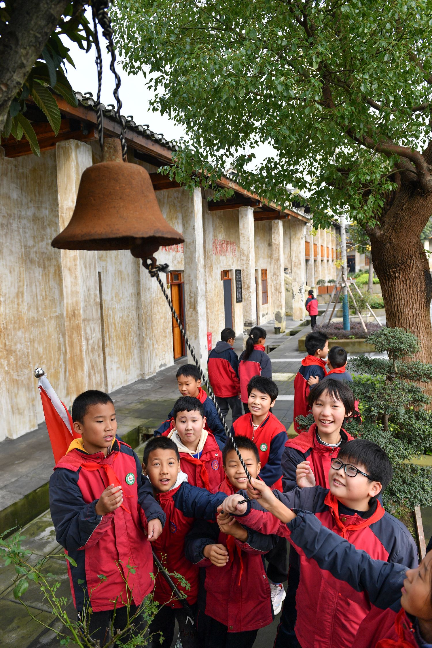 图为10月23日,丹江口市习家店镇小学学生参观老均县县委大院。