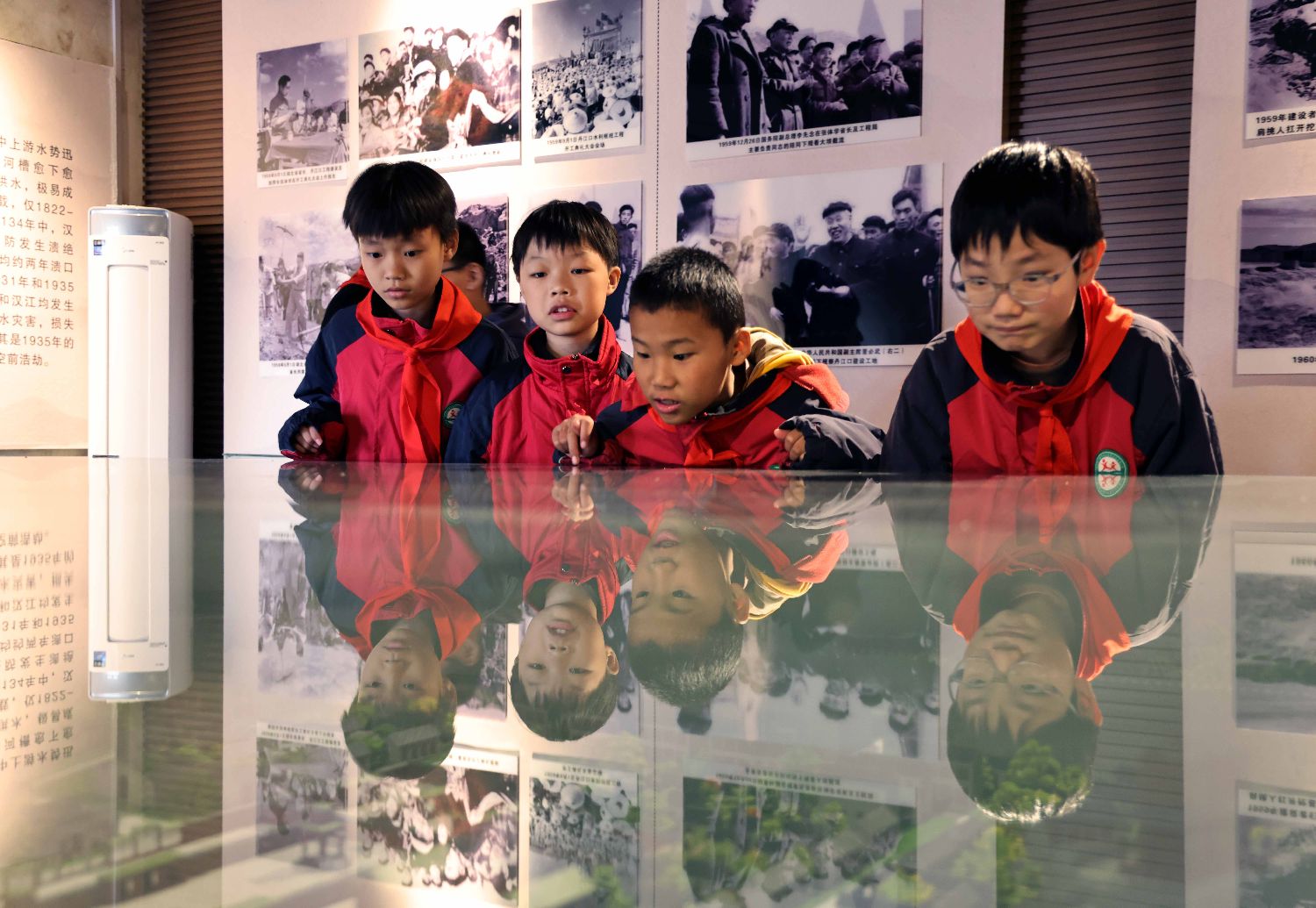 在丹江口大坝附近,丹江口市建设了南水北调中线工程纪念园,通过微缩还原的形式,重现了中线输水线路上的标志性工程,以及南水北调中线工程上重要节点城市的主要景点,让民众深入了解南水北调中线工程的规划、建设和运行过程。 图为10月22日,湖北省丹江口市南水调北中线工程纪念园,当地学生在开展研学活动。