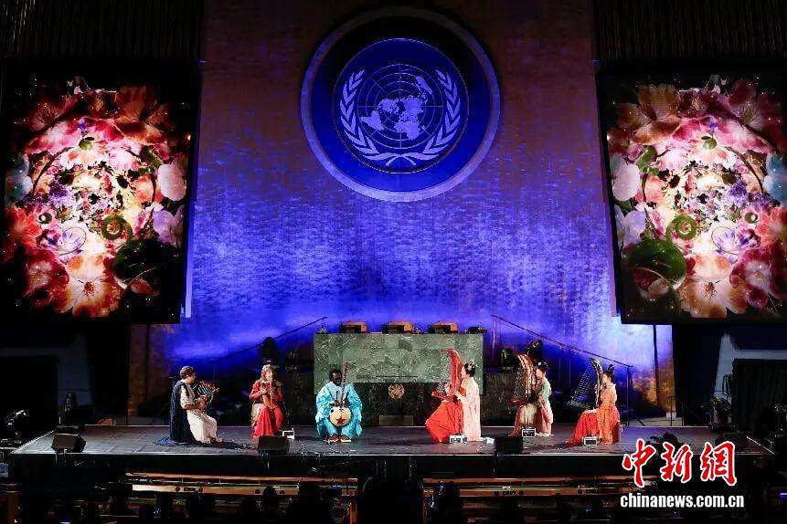 当地时间2025年6月9日,中国在纽约联合国总部举办“文明对话国际日”主题活动。图为来自中国、美国、希腊、塞内加尔的艺术家在“跨越山海的文明对话”文艺演出上表演器乐合奏《美美与共》。