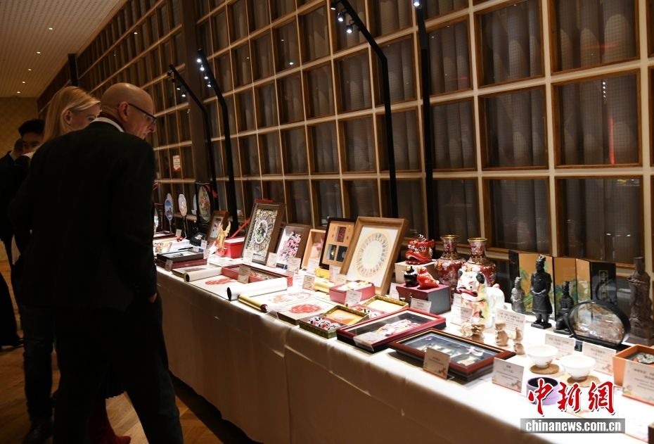招待会期间还进行了中国非物质文化遗产展示,展示物品包括藏药、藏戏人像、转经筒和苗绣、青绣、山东泥塑、龙泉青瓷等,各界来宾纷纷驻足观看。大家互致新春祝福,祝愿中国繁荣昌盛,中瑞、中列关系行稳致远。