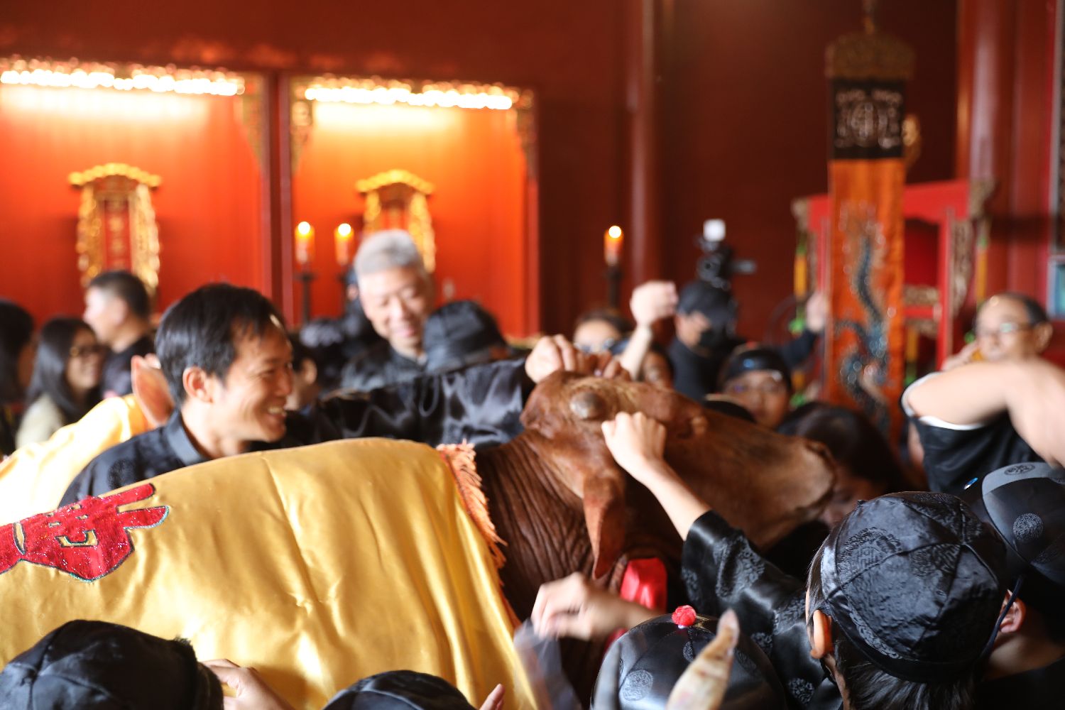 据工作人员介绍,台南孔庙采用太牢之礼使用的是真牛、真羊、真猪。其中,民众称祭祀用牛的眼、耳、额头等部位的毛发为“智慧毛”。民间相信,经过祭孔的牛,其毛发可以帮助读书人增长智慧、保佑考试顺利,故而催生出这一活动。有当地市民表示,参加“拔智慧毛”活动是希望讨个好彩头,为在读小学六年级的儿子的未来学习带来祝福。