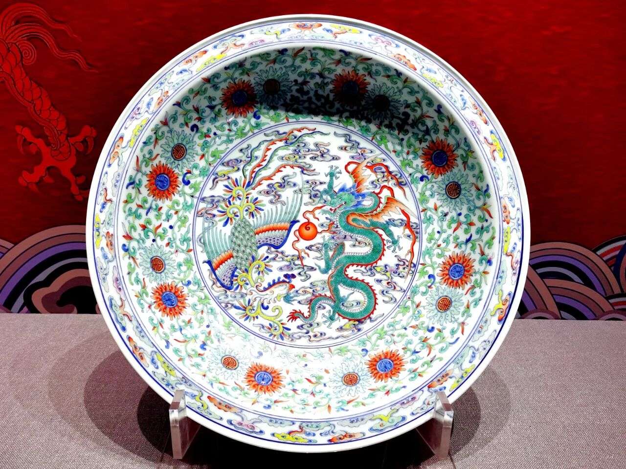 3月20日,农历二月初二“龙抬头”,记者走进沈阳故宫博物院听专家讲述院藏龙纹文物背后的“龙文化”。图为沈阳故宫博物院藏清雍正斗彩龙凤纹大盘。(图片来源:中新社)
