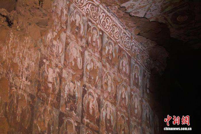 图为石窟内的壁画。