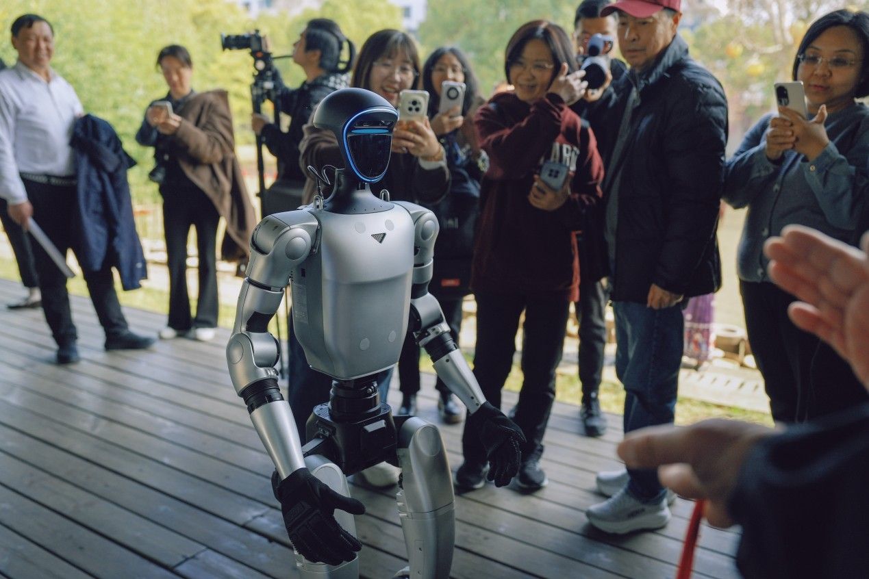 具身智能AI导览机器人在景德镇亮相,引发游客关注。(图片来源:中新社)
