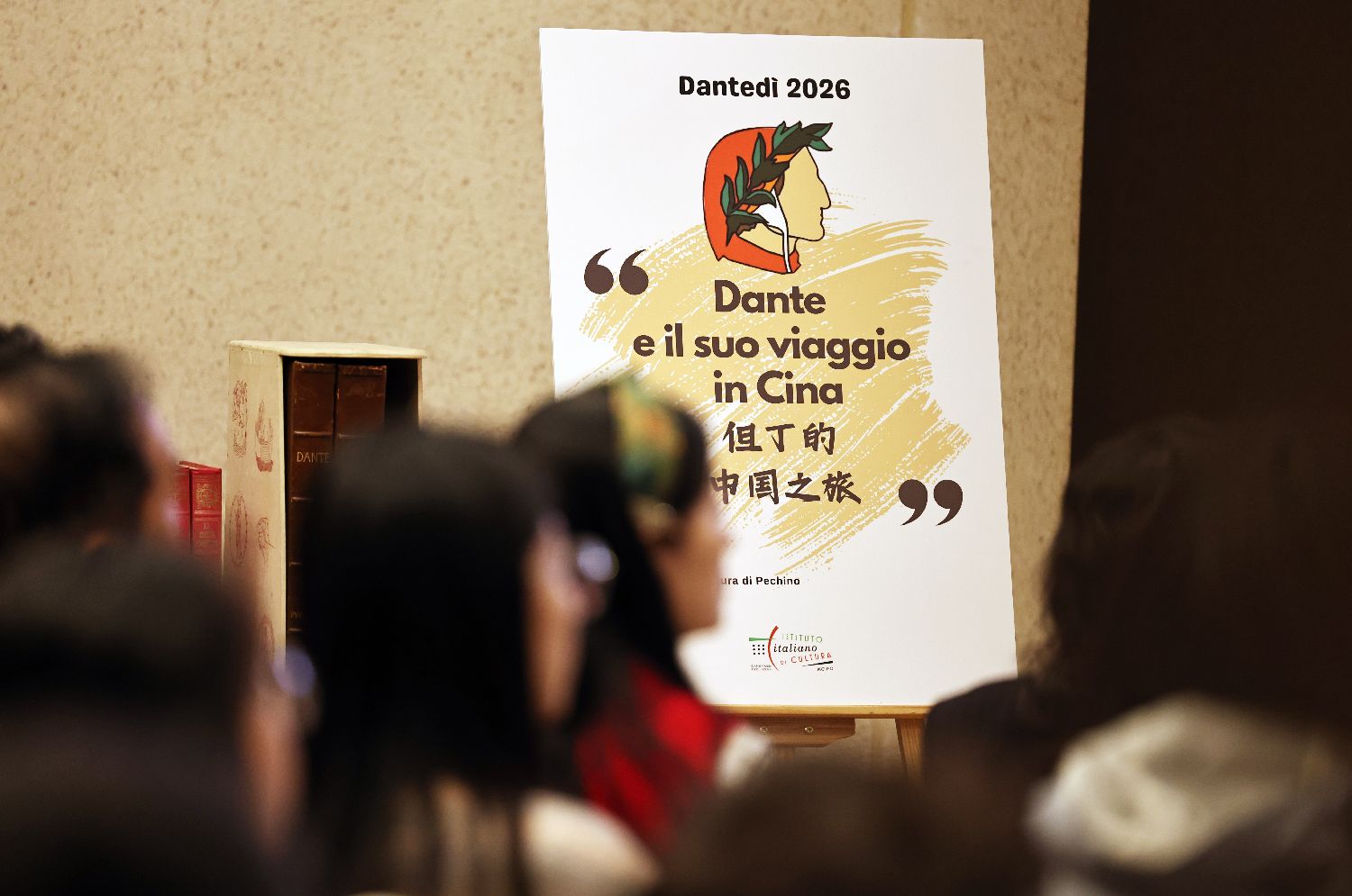 2026年3月25日,“但丁的中国之旅”活动在北京举行。当日是2026年但丁日(Dantedì),一场以“但丁的中国之旅”为题的主旨讲座在北京举行,介绍但丁及《神曲》在中国的译介、研究和产生的影响。(图片来源:郑晓峰 摄)