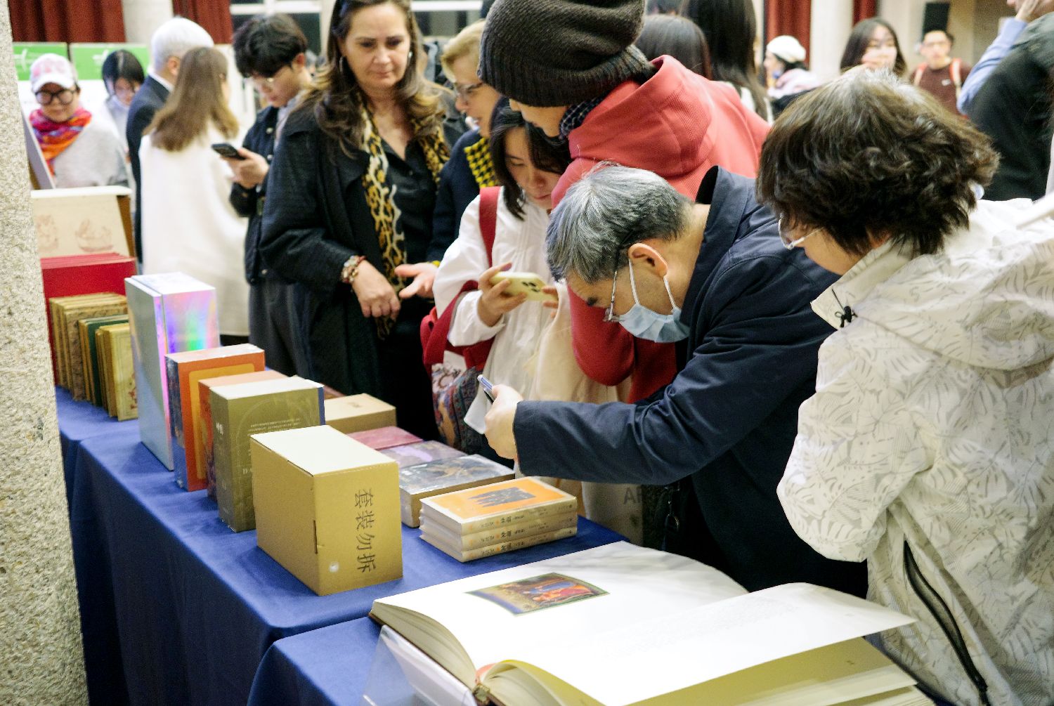 2026年3月25日,观众在活动现场参观《神曲》中外文版本。(图片来源:王木羊)