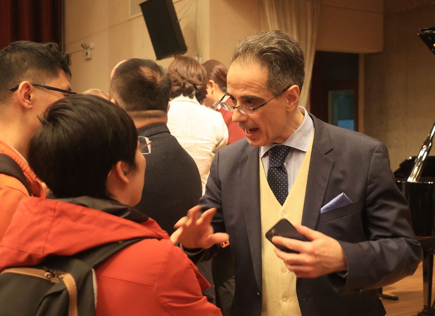 可以说,虽然在普通听众中的名气不高,克莱门蒂却是中国几代琴童的“启蒙导师”。参与了此次演奏会的中国听众表示,很高兴能够第一次知道这位与莫扎特齐名的天才。图为听众在演奏会后对孟斐璇积极提问。