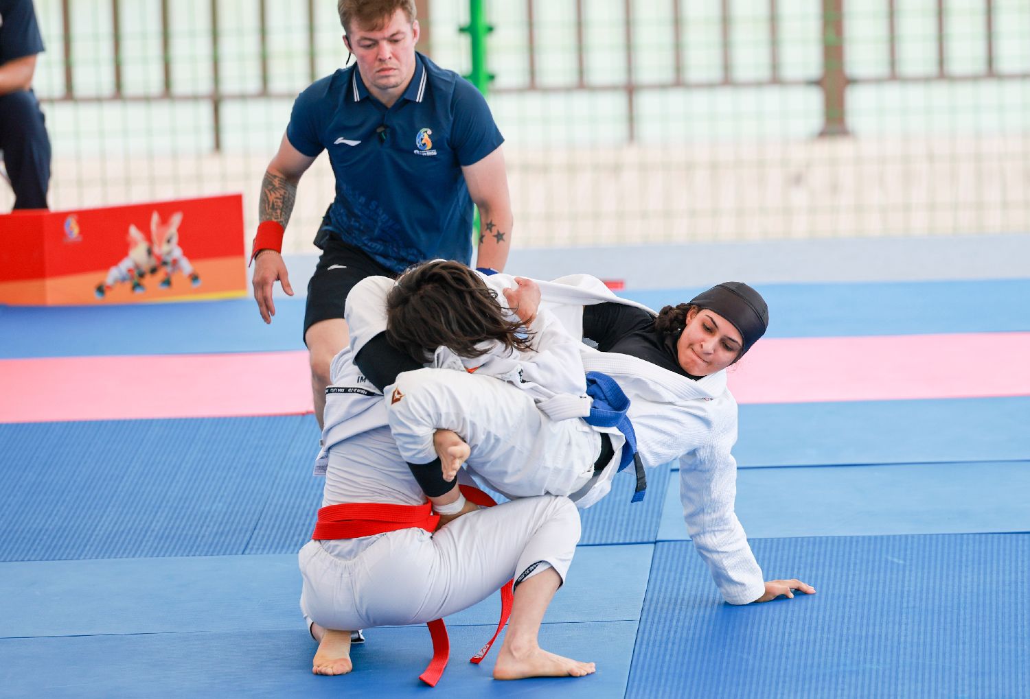 柔术是一项以地面缠斗为核心的格斗运动,亚沙会的柔术比赛在传统运动基础上融入沙滩环境,既保留竞技性也增强观赏体验。传统强队阿联酋队首日表现不俗,共取得四枚奖牌,其中阿尔谢希和胡萨尼分别拿下男子62公斤级、女子52公斤级两个项目金牌。